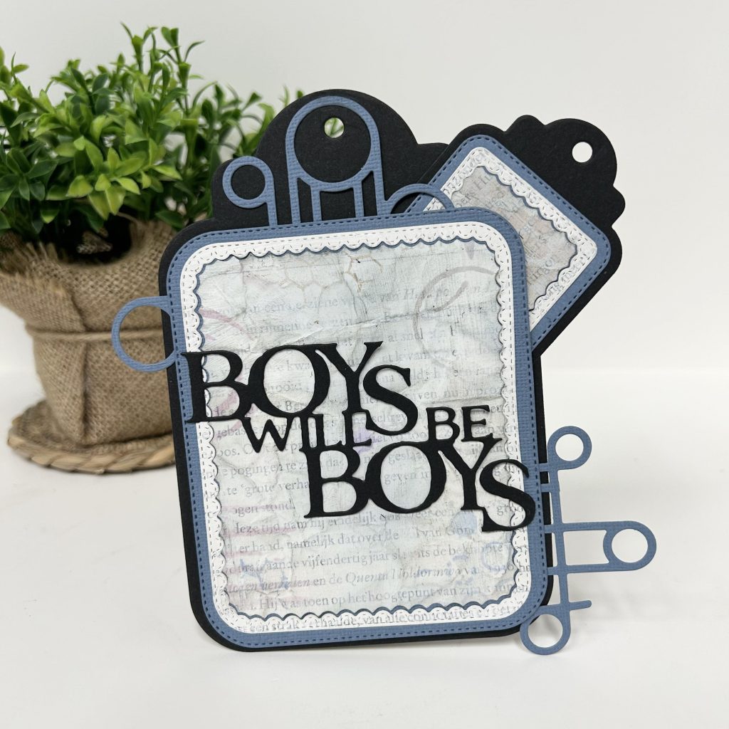 Als basis heeft ze de tag mal van Craftlab gebruikt. Hier ook het boekpapier uitgestanst en met de mallen van Coosa is de tag helemaal af,