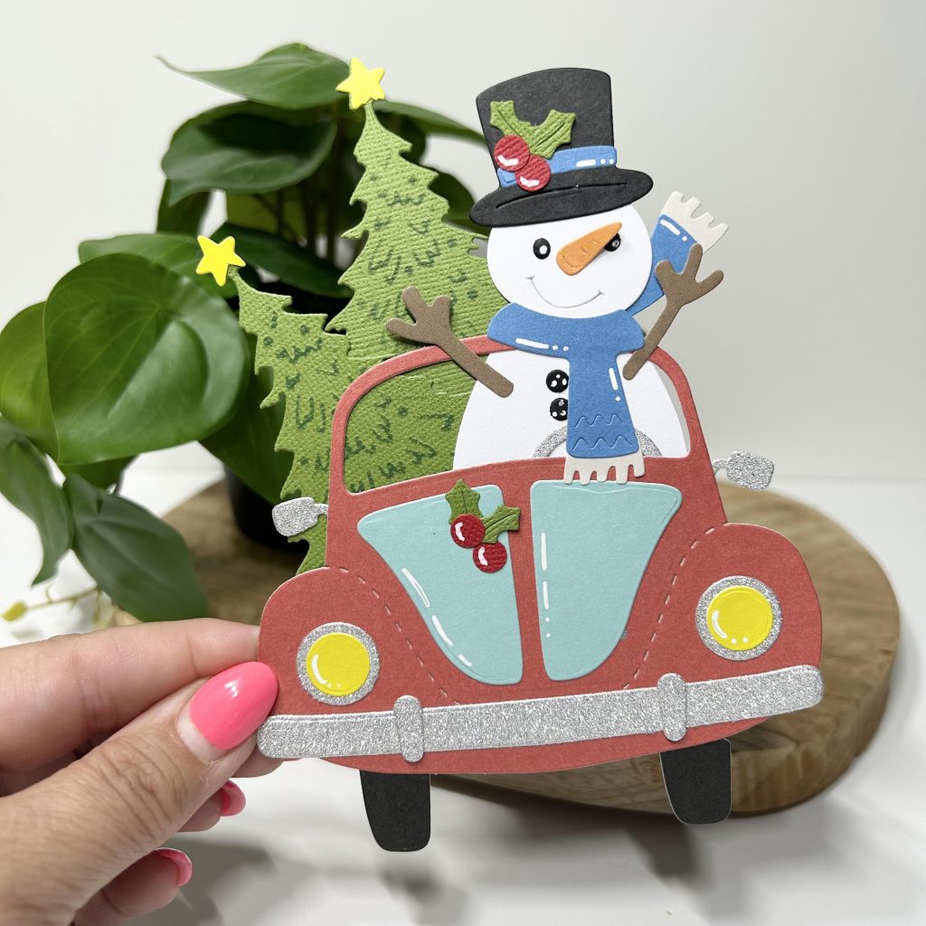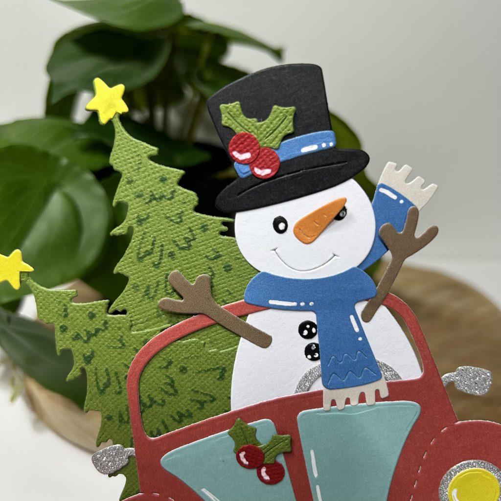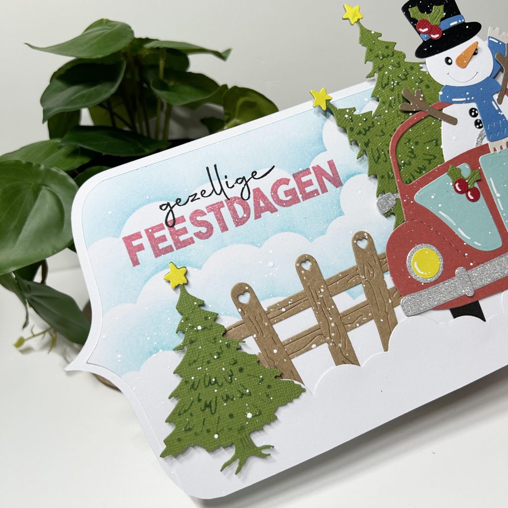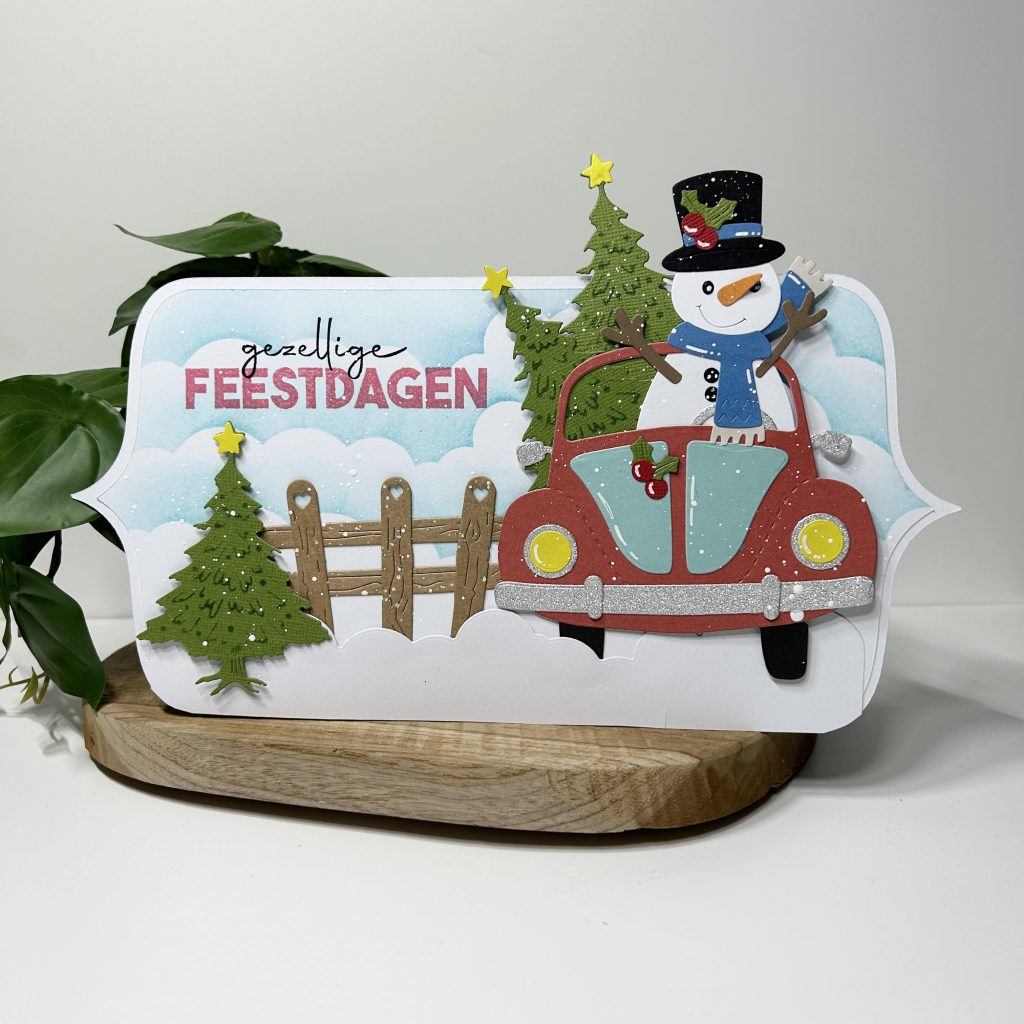 Jullie hebben vast onze Olaf al gezien, de nieuwe telg in onze Friendz familie van CraftLab. Jolanda heeft hem vandaag op dit kaartje verwerkt. Olaf gaat alvast de kerstboom kopen en die gaat mee in zijn auto.