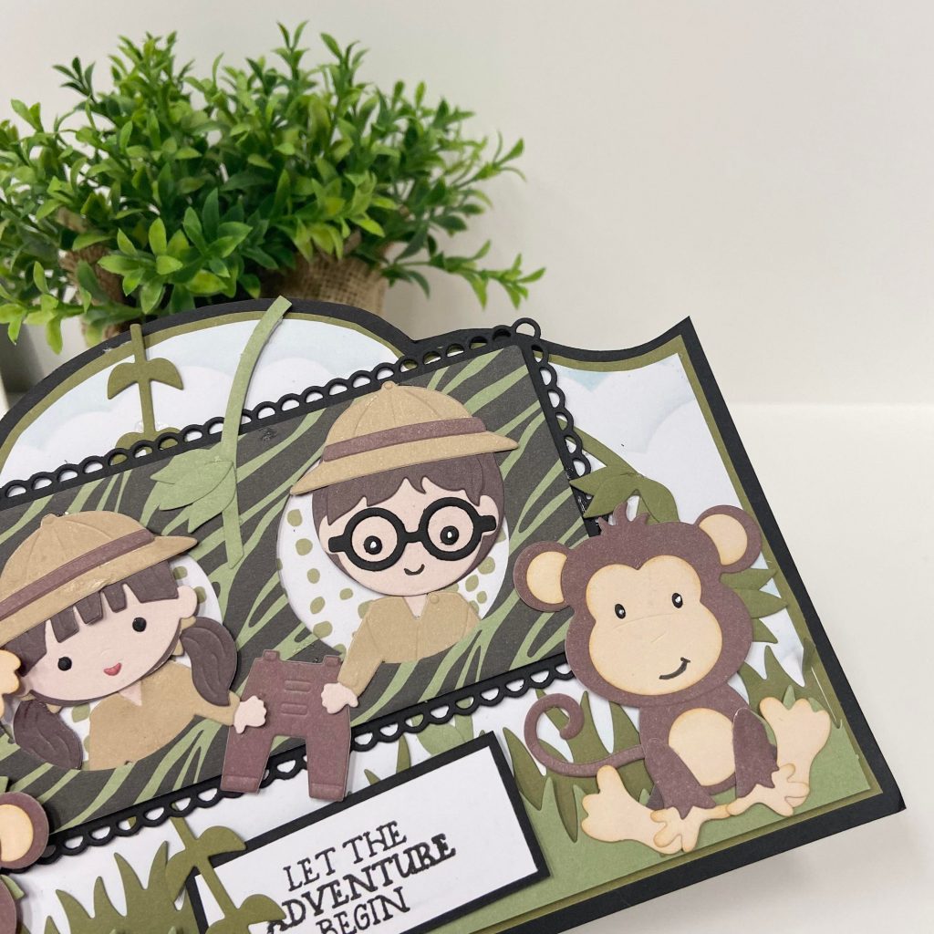 Jolanda en Monica zijn deze week allebei aan de slag gegaan met de “er was eens…” kit in het thema Safari. Jolanda heeft onderstaand slimline kaartje gemaakt en heeft van onze Elvis een echte ranger gemaakt. De video van Jolanda kan je hier terugkijken op ons YouTube kanaal.