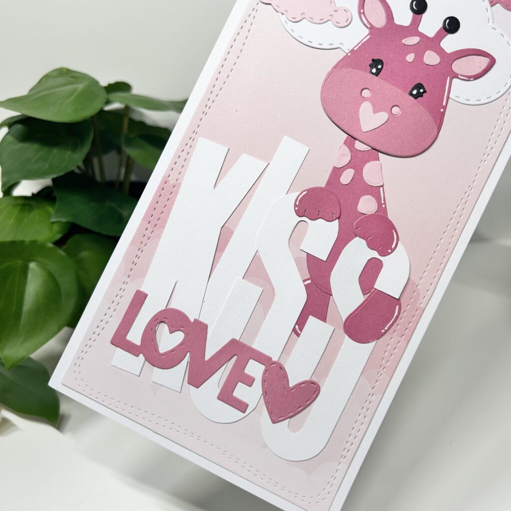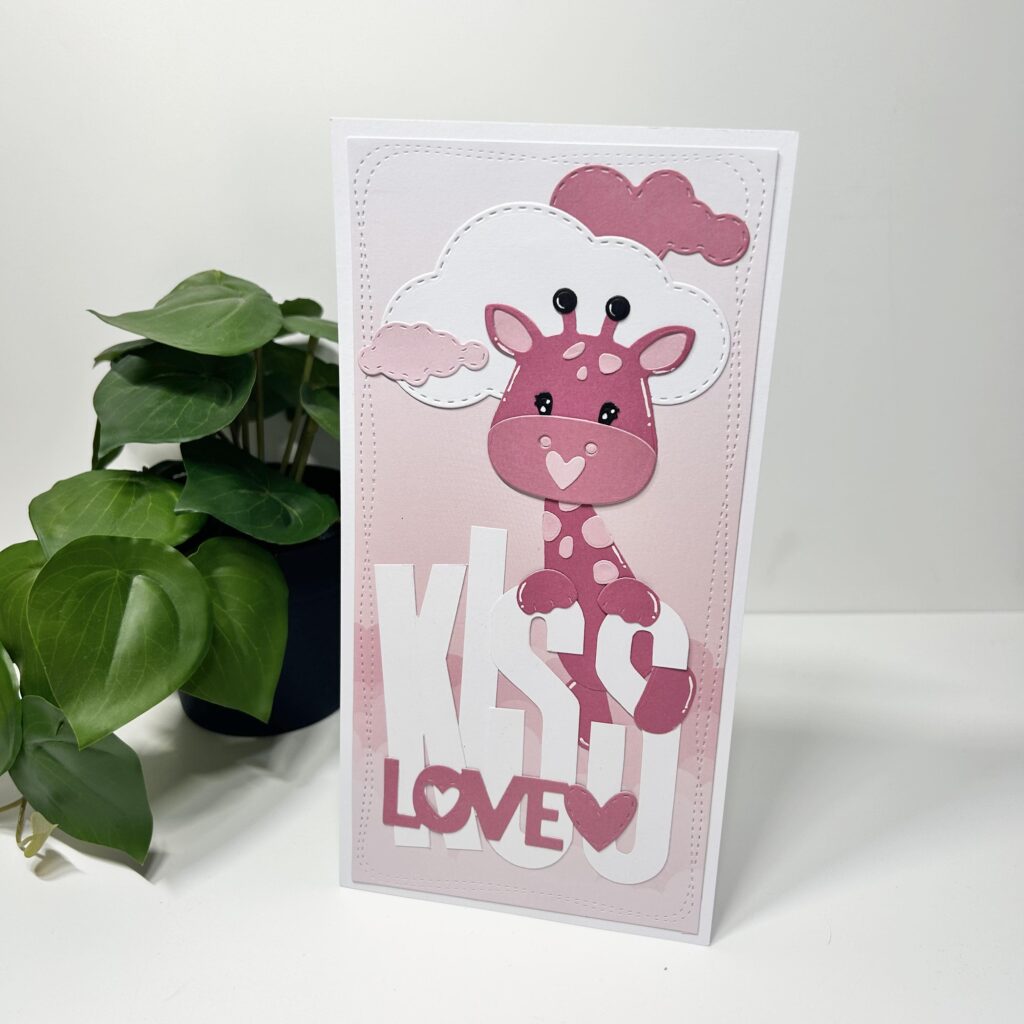 Het ideetje van Lucas liggend in het mandje kwam van Annette. De bovenstaande kaart heeft Annette voor jullie gemaakt ook met de nieuwe release van CraftLab. En op de kaart hieronder laat Annette ook zien dat je Lucas dus ook prima voor een babykaartje kunt gebruiken. De mooie grote letters KISS komen uit het nieuwe tekenalfabet van CraftLab.