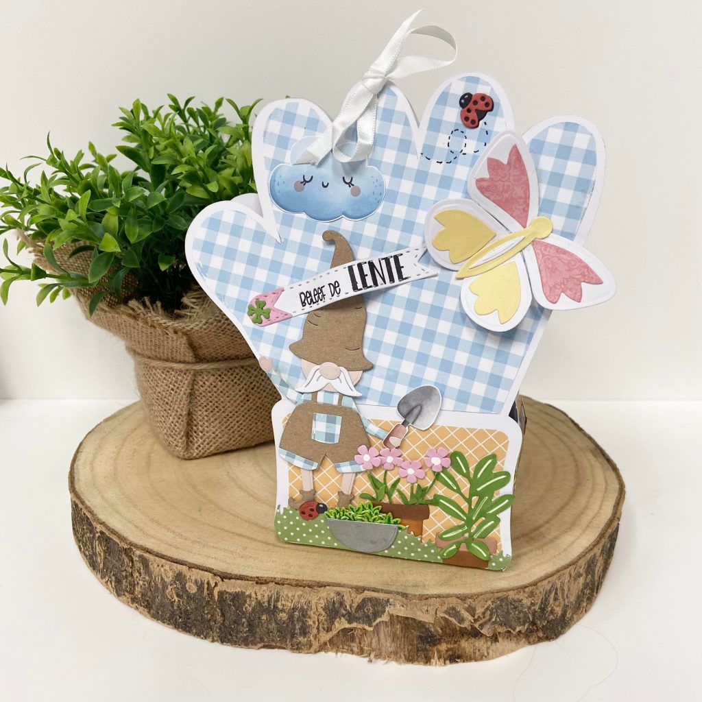 Er is onlangs een hele leuke voorjaarscollectie uitgekomen van Dutch Doobadoo met daarin diverse tekenmallen van o.a. een tuinhandschoen, een zak met aarde, het woordje lente en meer leuks. Deze week is Antoinette aan de slag gegaan met de tuinhandschoen en ze heeft er in een LIVE workshop weer iets heel leuks mee gemaakt.