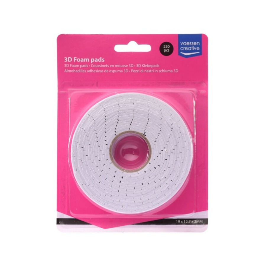 Deze 3D foam pads van Vaessen Creative zijn onmisbaar als je houdt van knutselen met papier. Gebruik de pads om diepte toe te voegen aan zelfgemaakte kaarten, scrapbook pagina’s en andere mixed media projecten. Plak ze tussen twee vellen papier voor een mooi 3D-effect of gebruik ze om je creaties te versieren met embellishments en andere decoraties. Combineer verschillende materialen en kleuren voor de leukste resultaten! Je kunt de foam pads ook gebruiken om foto’s, posters en andere lichte materialen te plakken.