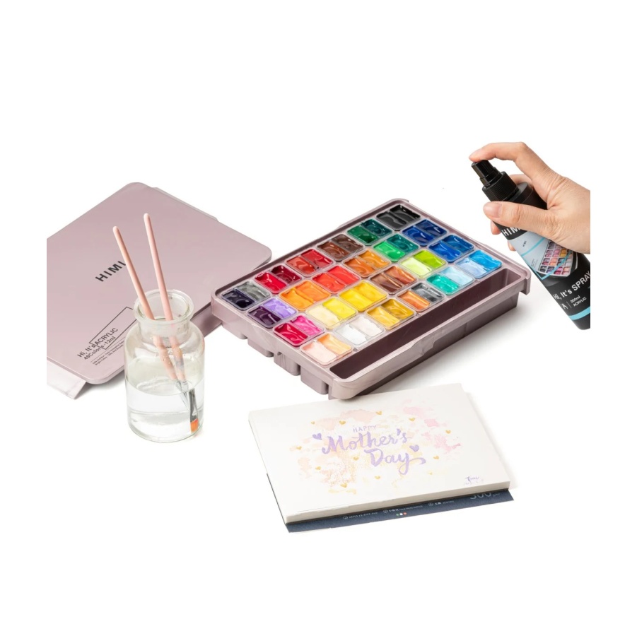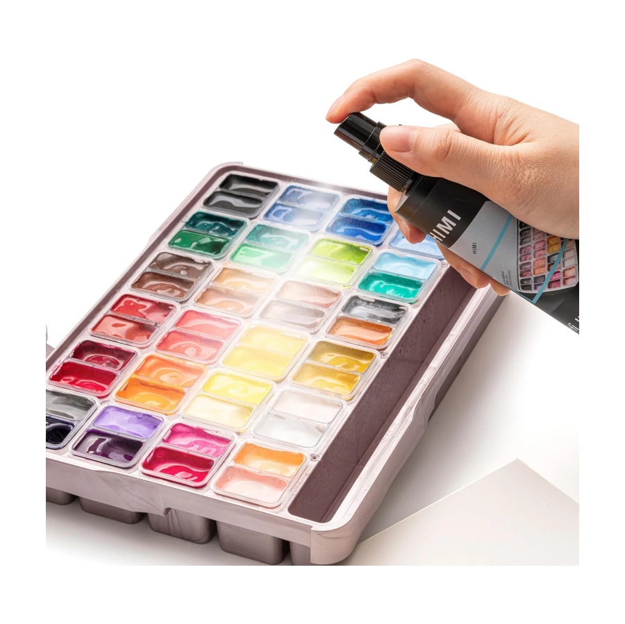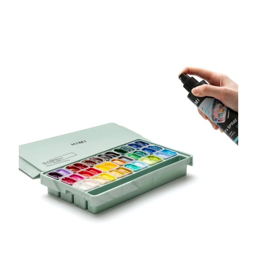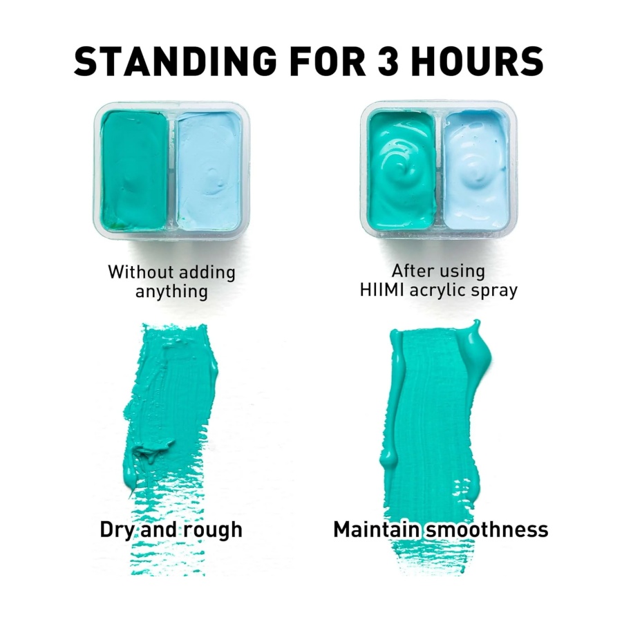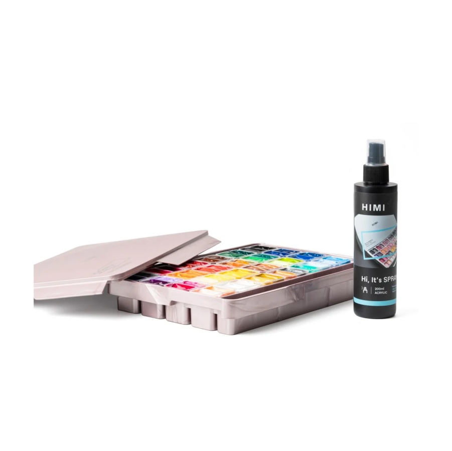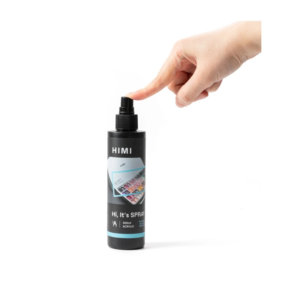 Spuit een geschikte hoeveelheid gelijkmatig op het oppervlak voordat je de deksel van de HIMI Twin Cup Jelly Acrylverf set sluit.