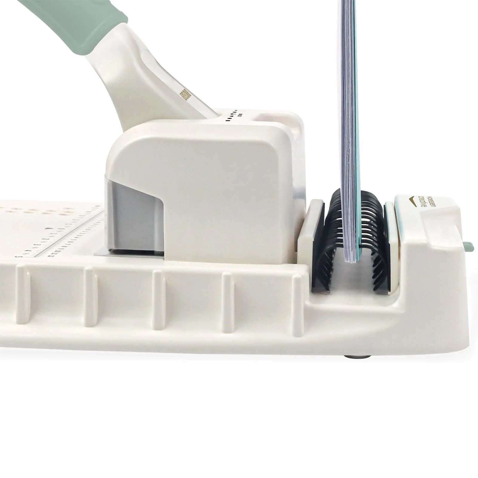 De Bind Easy inbindmachine (2021-400) ponst tot 10 vellen (80 g) tegelijk en is geschikt voor draadbinding met 2 of 3 gaten per inch (2:1 of 3:1) in verschillende maten, maar ook voor disc-binding. Afhankelijk van de gekozen bindrug of disc kun je documenten samenstellen van 20 tot circa 175 vellen. Met de verstelbare papiergeleider en de duidelijke maatverdeling in centimeters en inches werk je altijd nauwkeurig en perfect gecentreerd. Het compacte ontwerp, de vergrendelbare hendel en de geïntegreerde opvangbak maken de machine bovendien praktisch en gebruiksvriendelijk voor iedere creatieve maker, van beginner tot ervaren hobbyist.