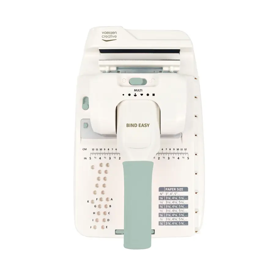 Ontdek de creatieve mogelijkheden van de Vaessen Creative Bind Easy, de alles-in-één inbindmachine voor wie zelf notitieboeken, journals, planners, receptenboeken of fotoalbums wil maken met een professionele afwerking. Dankzij de verwisselbare cartridges kies je moeiteloos tussen verschillende ponsstijlen en bindmethodes (draadbinding en discbinding), zodat elk project een persoonlijke uitstraling krijgt.