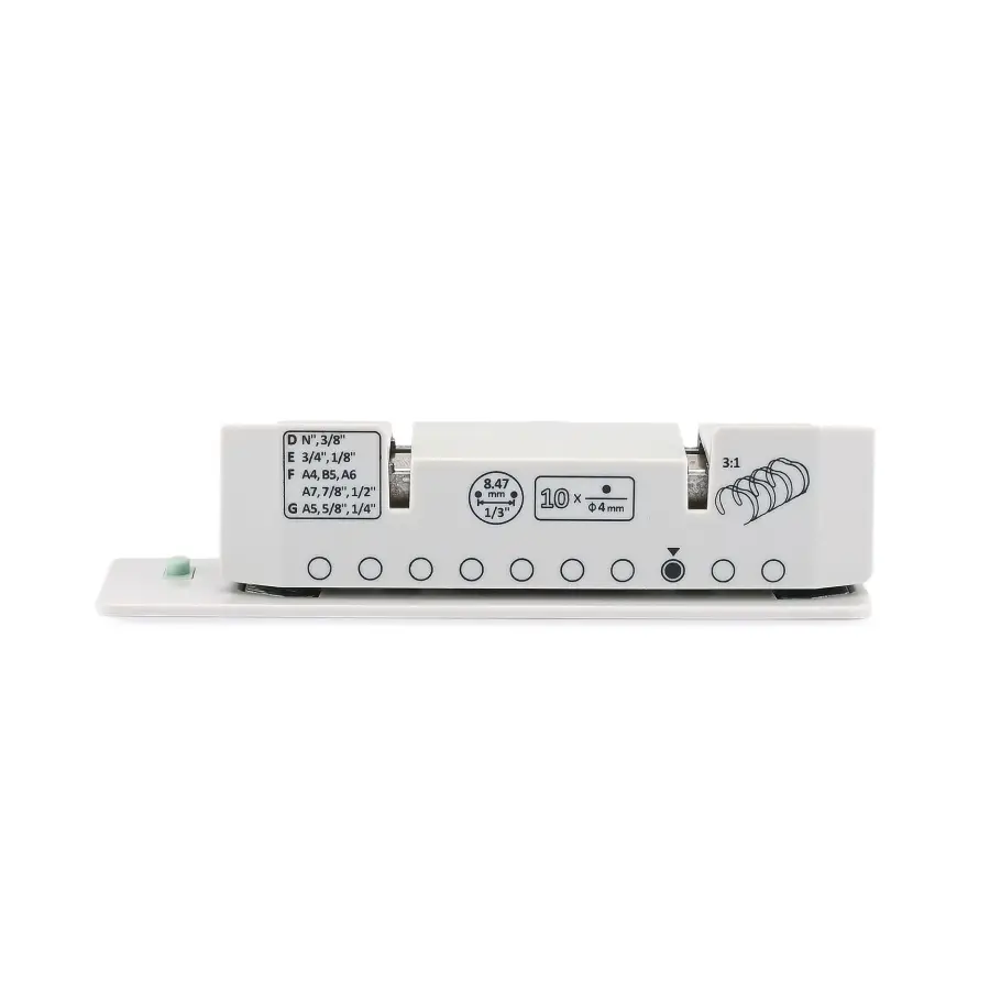 De Bind Easy inbindmachine (2021-400) ponst tot 10 vellen (80 g) tegelijk en is geschikt voor draadbinding met 2 of 3 gaten per inch (2:1 of 3:1) in verschillende maten, maar ook voor disc-binding. Afhankelijk van de gekozen bindrug of disc kun je documenten samenstellen van 20 tot circa 175 vellen. Met de verstelbare papiergeleider en de duidelijke maatverdeling in centimeters en inches werk je altijd nauwkeurig en perfect gecentreerd. Het compacte ontwerp, de vergrendelbare hendel en de geïntegreerde opvangbak maken de machine bovendien praktisch en gebruiksvriendelijk voor iedere creatieve maker, van beginner tot ervaren hobbyist.