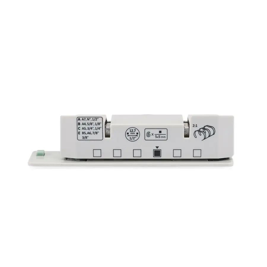 De Bind Easy inbindmachine (2021-400) ponst tot 10 vellen (80 g) tegelijk en is geschikt voor draadbinding met 2 of 3 gaten per inch (2:1 of 3:1) in verschillende maten, maar ook voor disc-binding. Afhankelijk van de gekozen bindrug of disc kun je documenten samenstellen van 20 tot circa 175 vellen. Met de verstelbare papiergeleider en de duidelijke maatverdeling in centimeters en inches werk je altijd nauwkeurig en perfect gecentreerd. Het compacte ontwerp, de vergrendelbare hendel en de geïntegreerde opvangbak maken de machine bovendien praktisch en gebruiksvriendelijk voor iedere creatieve maker, van beginner tot ervaren hobbyist.