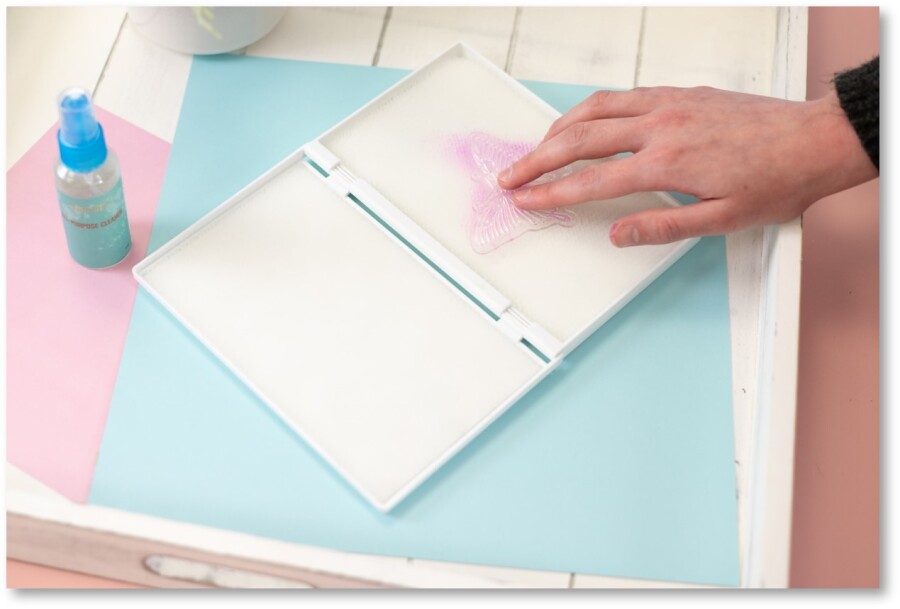 Gebruik voor de beste resultaten het Crafter’s Companion Stamp Cleaning Solution (CC-TOOL-STCLSO).Let op, deze is niet inbegrepen.