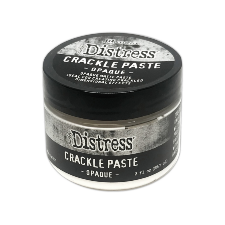 Tim Holtz Distress® Crackle paste opauq is een wit glanzende pasta die ideaal is voor het creëren van fijne craquelé-effecten. Crackle pasta kan zowel nat als gedroogd worden gekleurd, waardoor eindeloze kleurmogelijkheden mogelijk zijn.