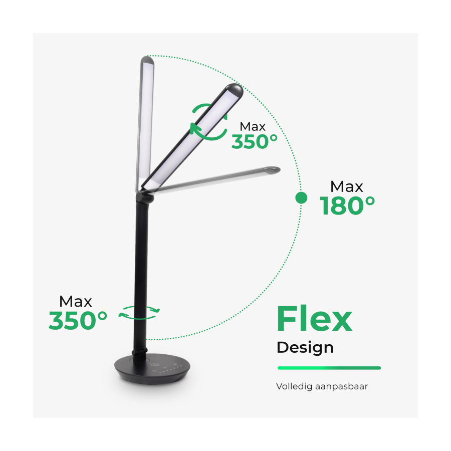 De helderheid is instelbaar in 7 stappen. De lichtkleur en helderheid kunnen eenvoudig worden ingesteld op de voet van de lamp. De bureaulamp heeft een geheugenfunctie die je laatste instelling onthoudt.