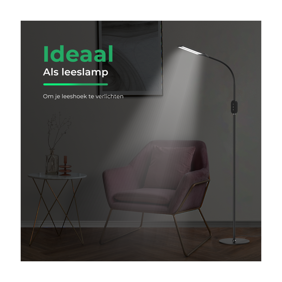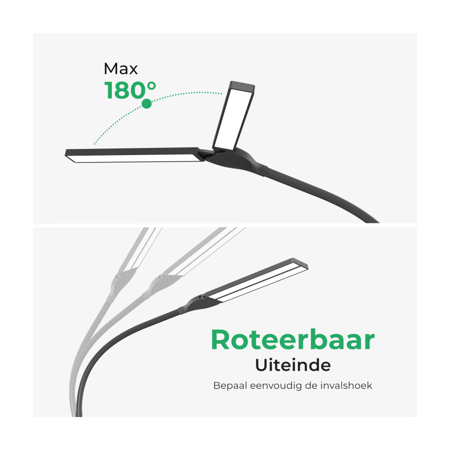 2 LED lampen: Deze vloerlamp is voorzien van maar liefst 2 LED lampen. Dit zorgt voor een dubbele lichtopbrengst, waardoor je ruimte extra goed verlicht wordt. Dankzij deze twee lampen heb je altijd voldoende licht in huis en kun je elke hoek van de kamer goed belichten.