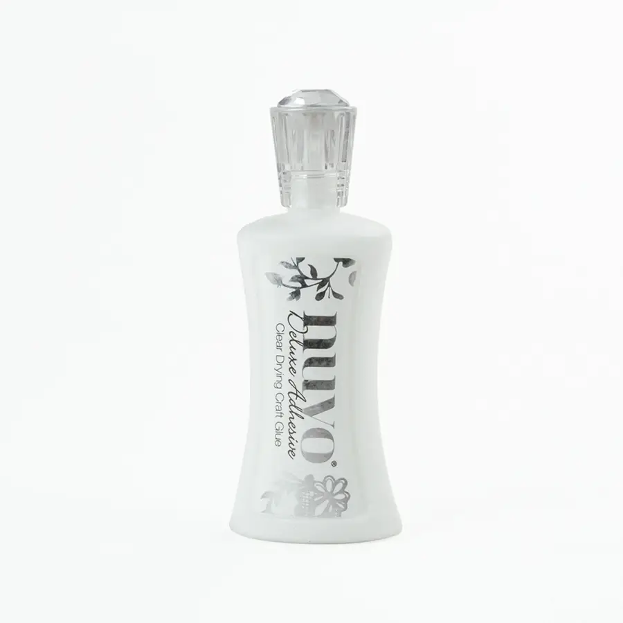 De Nuvo Deluxe Adhesive van Tonic Studios is een lijm op waterbasis. Deze PVA lijm – ook wel houtlijm of schoollijm genoemd – is zacht en wit, maar droogt transparant op. De lijm kan op veel verschillende materialen gebruikt worden, zoals: papier, karton, foam, acetaatfolie en MDF. Een kreukeffect bij gebruik op papier en karton is minimaal, waardoor je het perfect kan gebruiken voor een professionele afwerking.