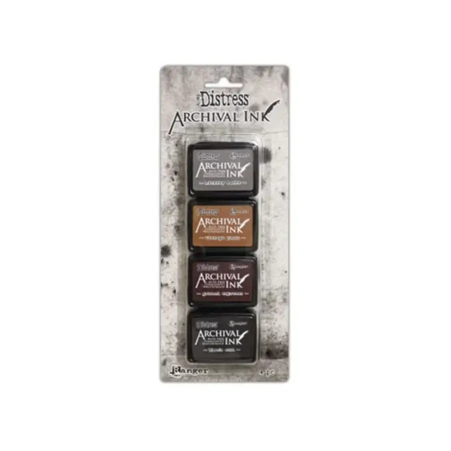 De Tim Holtz Distress Archival inkt van Ranger is een dye inkt op oliebasis voor het maken van scherpe stempelafdrukken op verschillende ondergronden. Archival inkt doet het goed op zowel mat als glanzend papier, canvas en hout. Eenmaal droog, is de inkt permanent. Op een gladde ondergrond kan het iets langer duren voordat de inkt droog is. Je kunt dit proces eventueel versnellen met een heat tool. Distress Archival bestaat als tweede serie naast de andere Archival inkten van Ranger en is gelijk aan het Distress kleurenpallet. Dit zijn mini Distress Archival ink pads verkrijgbaar in sets van 4 kleuren.