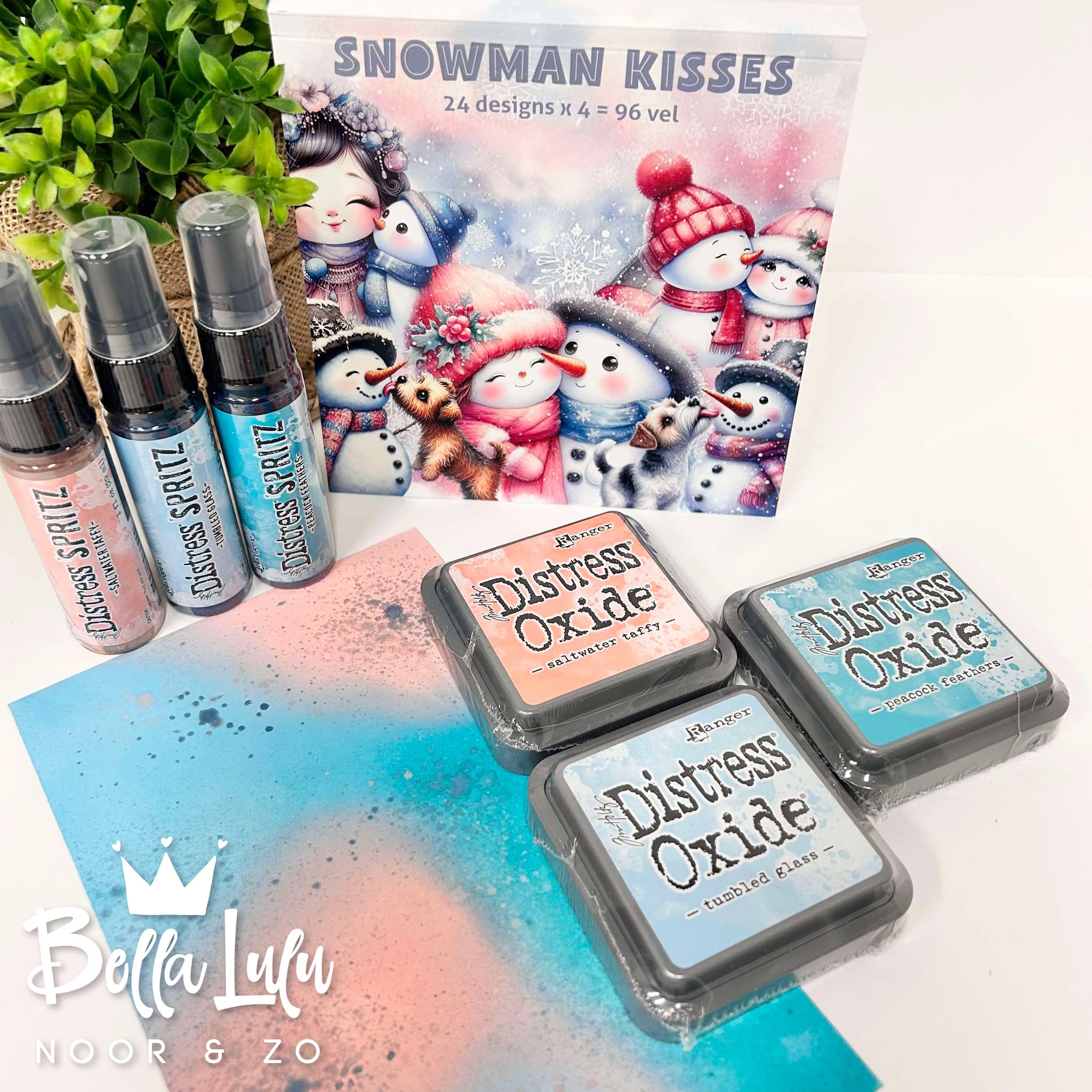 Distress Oxide inkt is een combinatie van dye inkt en pigment inkt waarmee je een geoxideerd effect krijgt als je er water op wordt sprays. Distress Oxide kan gebruikt worden in combinatie met stempels, stencils en rechtstreeks op papier. Ieder soort en kleur papier geeft een ander effect.