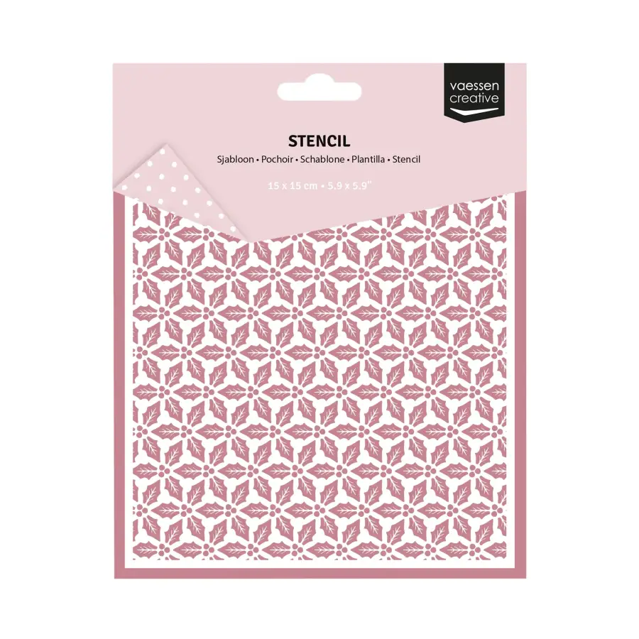 Met dit leuke stencil van Vaessen Creative geef je al je kaarten, scrapbooks of journalpagina’s in een handomdraai een creatieve twist. Dit sjabloon is onderdeel van de Jolly Mail Collection, de Vaessen Creative kerstcollectie van 2025. Met een afmeting van 15 x 15 cm is dit stencil met hulstbladeren ideaal om te gebruiken als achtergrond. Het sjabloon is gemaakt van stevig plastic, makkelijk schoon te maken en keer op keer te gebruiken op papier, cardstock of karton. Combineer de stencil met inkt, kleurpotloden of blending brushes voor bijzondere resultaten!
