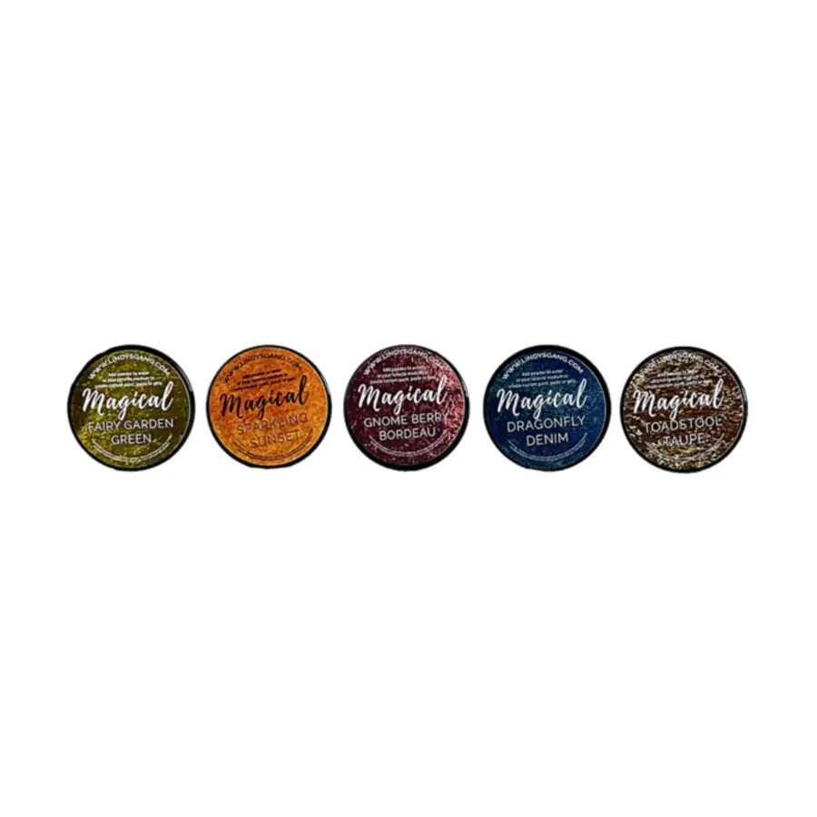 De Enchanted Forest-set bevat: Toadstool Taupe – diep, rijk bruin met een sprankelende gouden glans; Dragonfly Denim – een donker, denim-y marineblauw met een prachtige blauwe glans; Gnome Berry Bordeaux – een diepe, bruinachtige bordeauxrode kleur met een bordeauxrode glans; Sparkling Sunset – super levendig oranje-geel met een sprankelende gouden glans; Fairy Garden Green – een perfect bruinachtig groen met een rijke gouden glans.