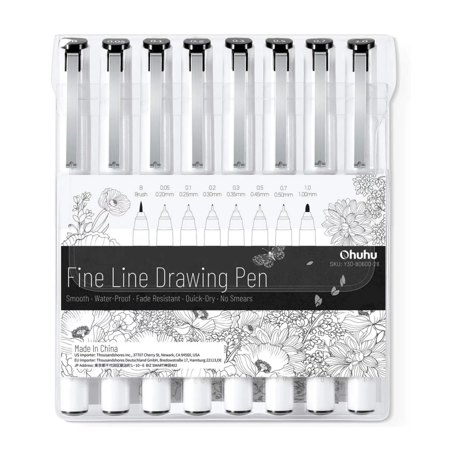 Ohuhu Fineliner drawing pen zwart – set van 8