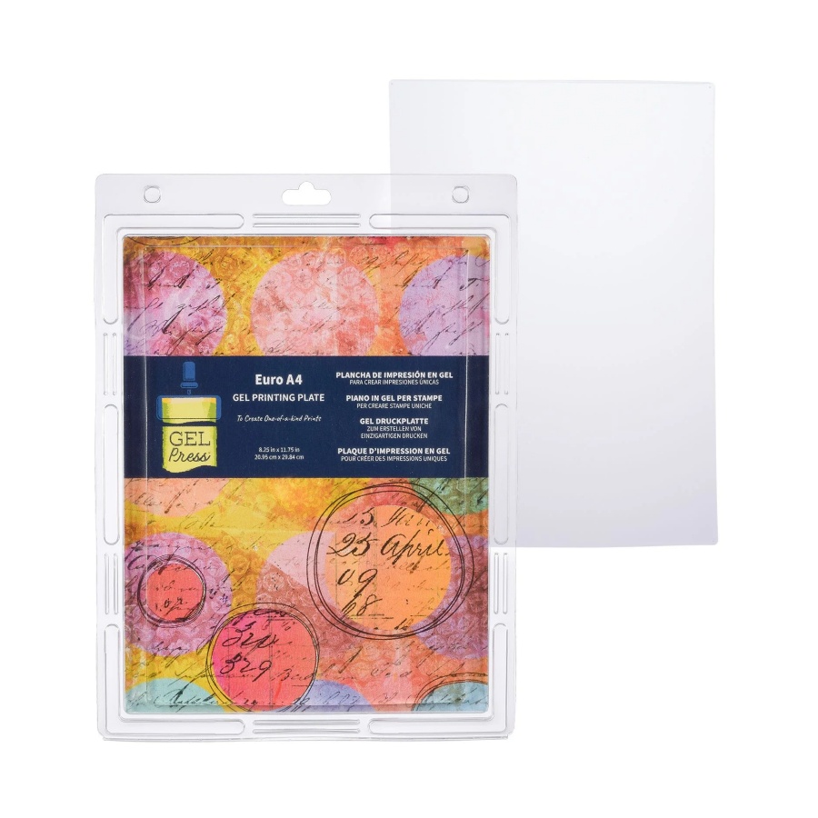 Met de gel drukplaat van Gel Press maak je mooie afdrukken op cardstock, knutselpapier of stoffen. Dit doe je door verf aan te brengen op de drukplaat en die vervolgens te verdelen met een roller of penseel. Maak patronen in de verf met sjablonen, stempels, penselen, spatels, stencils of een textuurkam. Wanneer je het gewenste resultaat bereikt hebt, leg je je papier of textiel op de gel drukplaat en druk je dit goed aan, waardoor de verf zich aan het materiaal hecht. Als je het papier of de stof eraf trekt, is je print klaar.