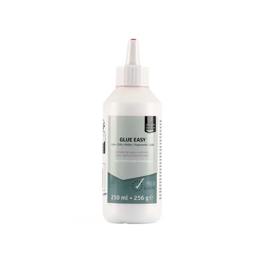 De universele formule hecht op diverse materialen zoals papier, karton, hout en textiel. Breng de lijm dun aan op beide oppervlakken, laat kort drogen en druk de delen stevig op elkaar. De exacte droogtijd hangt af van het materiaal. Bewaar de lijm op een vorstvrije plaats. Let op: Glue Easy bevat CMIT/MIT, wat een allergische reactie kan veroorzaken.