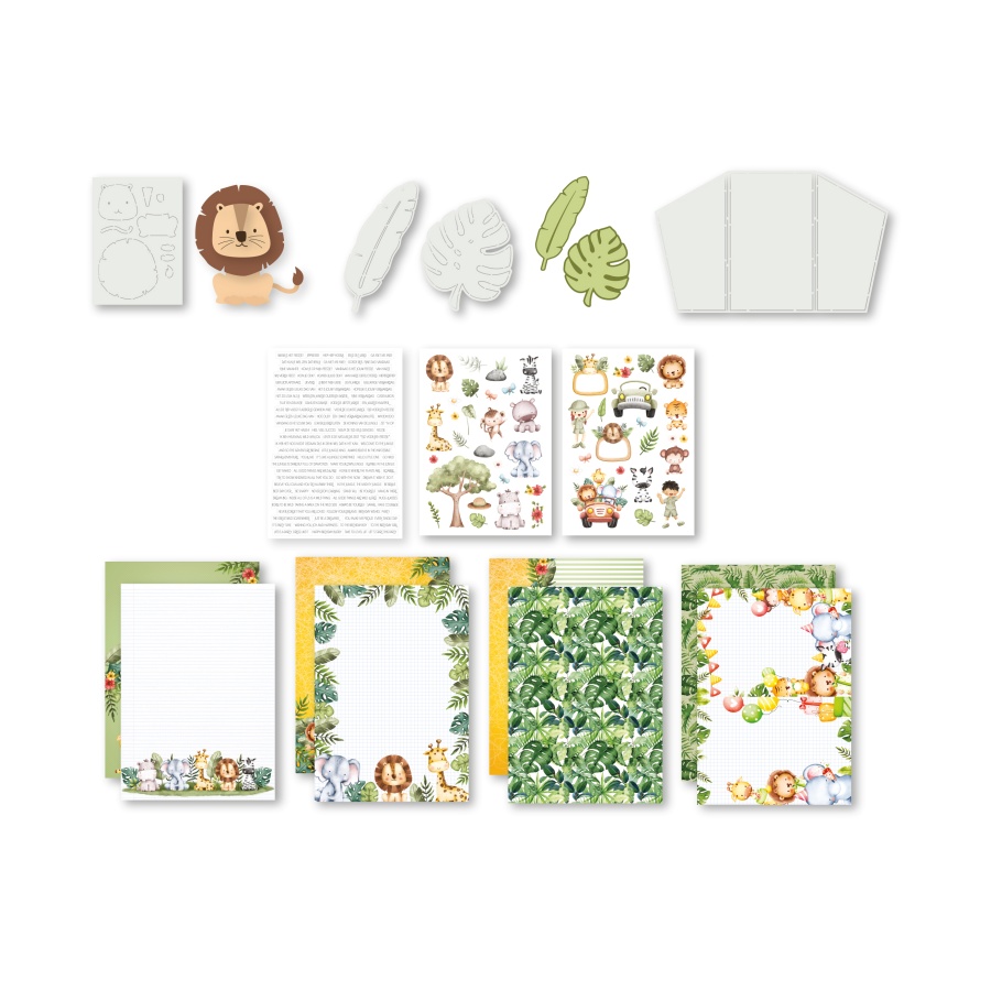Inhoud: 2 knipvellen, 12 vellen designpapier dubbelzijdig bedrukt, 1 stansvel en 3 tekenmallen.