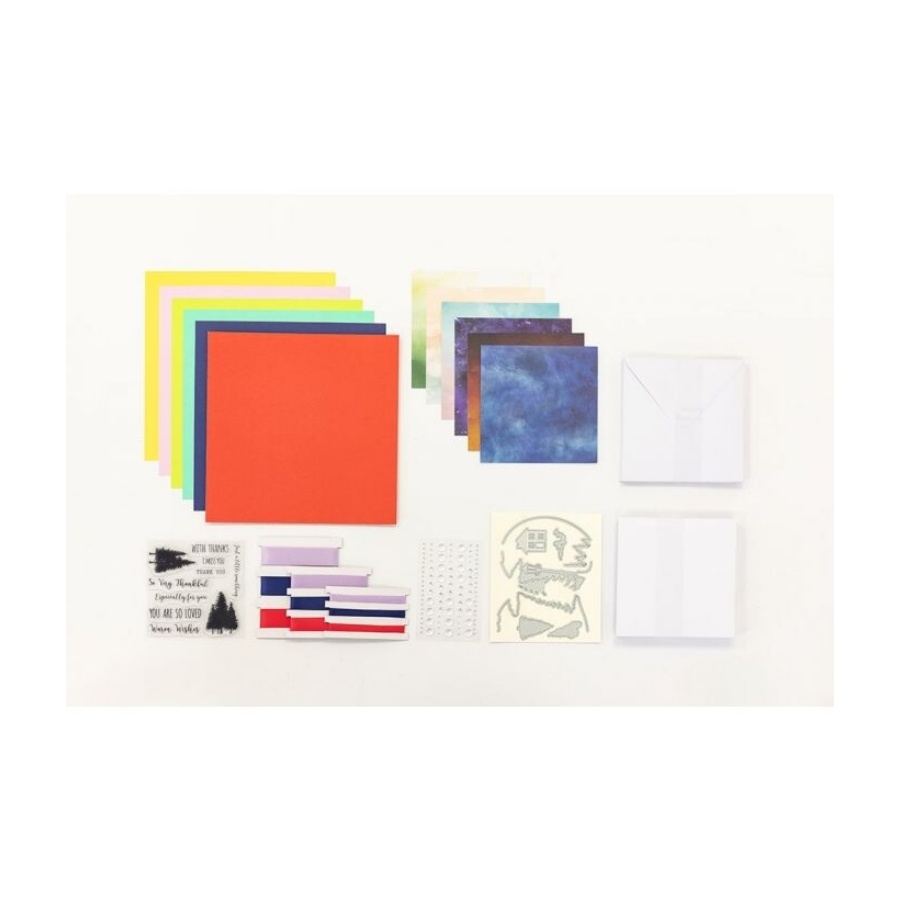 Deze gevulde doos met goodies nodigt je uit om gelaagde projecten uit te stansen en te maken. En om mooie en elegante 3D-scèneontwerpen te stempelen en te kleuren om echt opvallende kaarten en creaties te maken!
