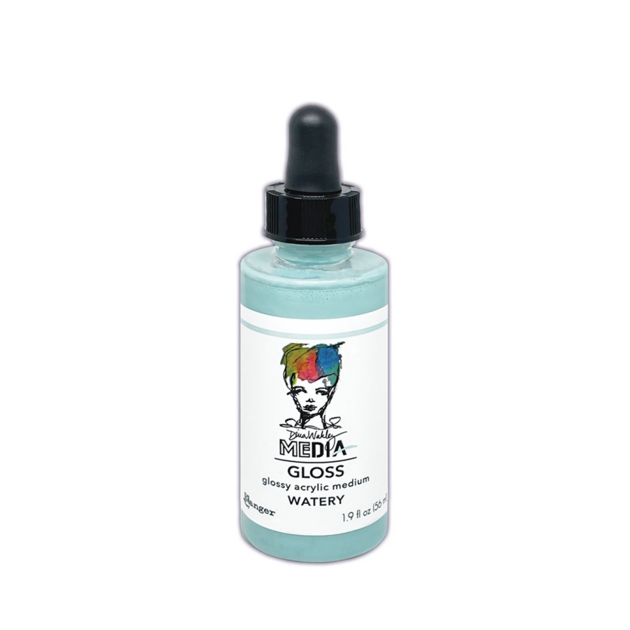 Dina Wakley Media Gloss is een ondoorzichtige vloeibare acrylverf met een druppelaar die opdroogt tot een glanzende finish. Geschikt voor gebruik op papier, textiel en andere poreuze oppervlakken zoals media journals, chipboardvormen, mediaboard en meer.