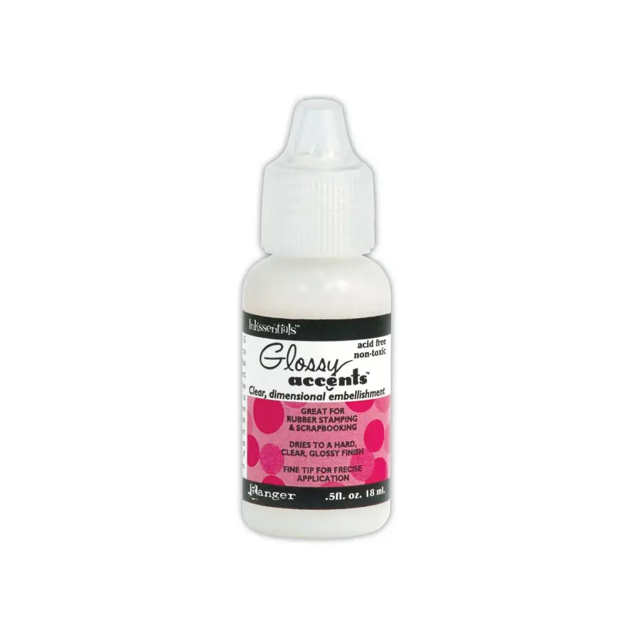 Glossy Accents van Ranger is een doorzichtig, vloeibaar medium waarmee je glanzende 3D-accenten kunt aanbrengen op allerlei papercrafts. Accentueer een deel van je scrapbookpagina, geef gestempelde afbeeldingen een 3D-look of voorzie je home deco project van glanzende details. Dankzij de precisiepunt kun je precies datgene accentueren wat jij wil laten opvallen. Breng een laag Glossy Accents aan en laat dit aan de lucht drogen tot een mooie transparante 3D-laag. Door te variëren in een dikkere of dunnere laag kun je zelf de grootte van het 3D-effect bepalen.