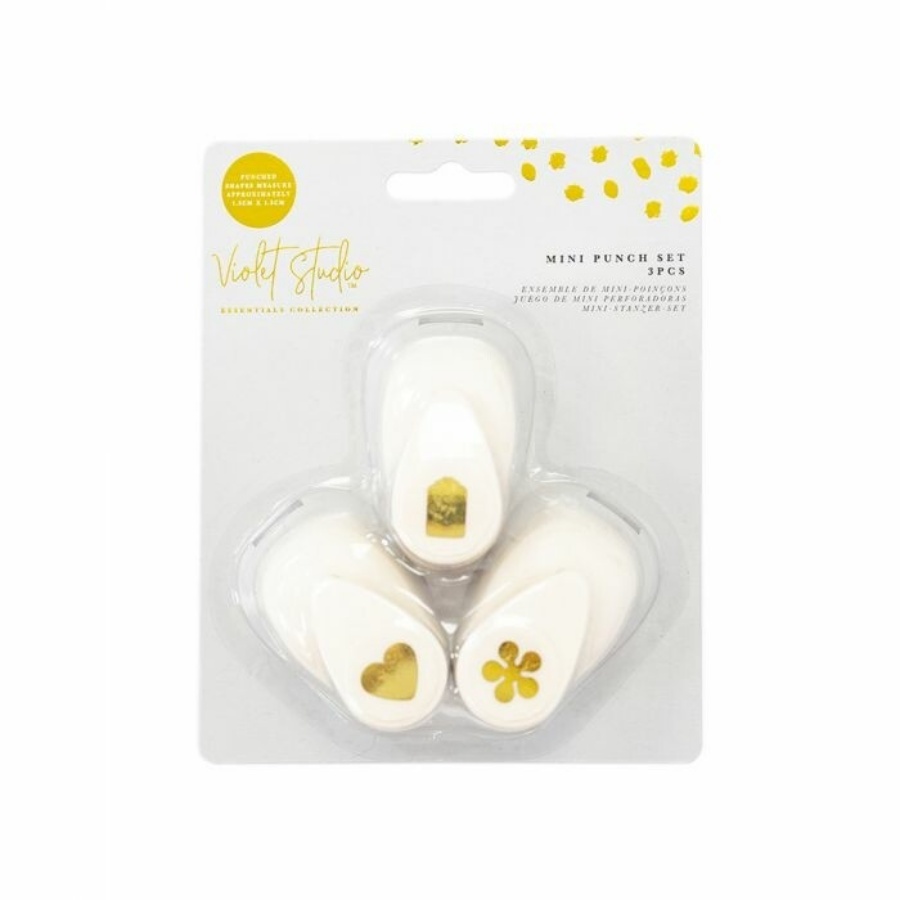 De Violet Studio Mini Punch Set bevat drie ponsen om de schattigste vormen van papier en karton te maken.