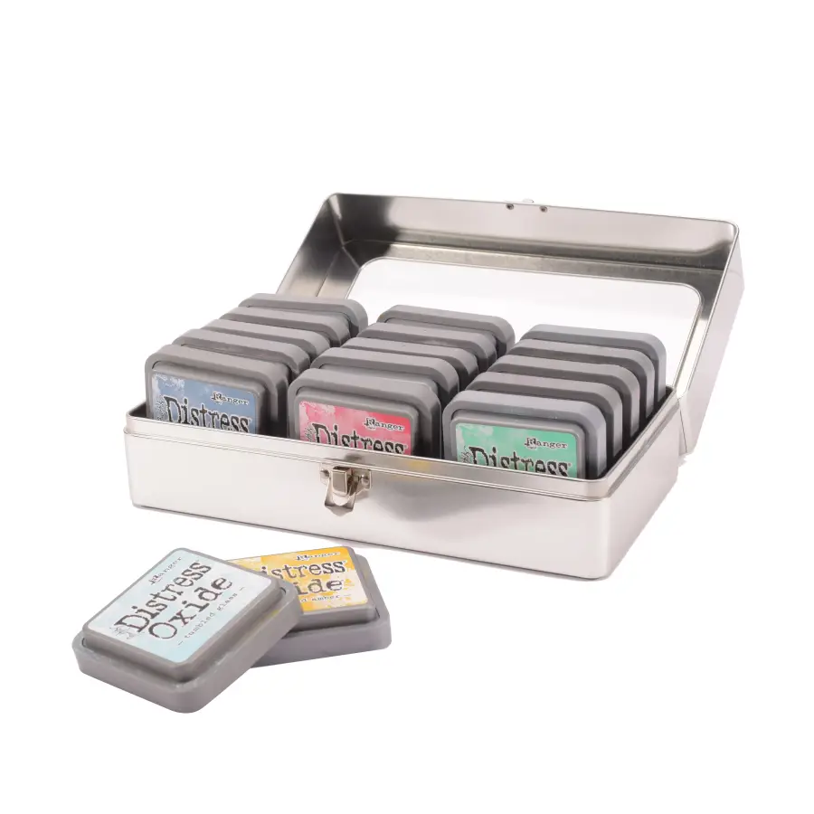 De Tim Holtz Distress Ink Pad Storage Tin van Ranger is een ideale opbergoplossing om je Distress stempelkussens in te bewaren. Met dit blik kun je jouw Distress Ink Pads en Distress Oxide Ink Pads gemakkelijk ordenen en vervoeren. Het blik is praktisch vormgegeven met een hoog deksel, een doorzichtig venster waardoor je jouw stempelkussens kunt zien en een metalen scharniersluiting.