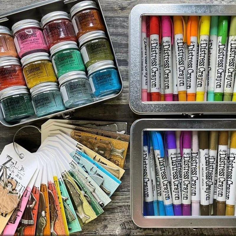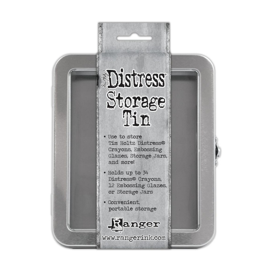 Tim Holtz Distress Storage Tin is de ideale opslagoplossing voor Distress Crayons, Embossing Glazes, Storage Jars en meer. Organiseer en vervoer krijtjes en potjes eenvoudig in dit handige blikje. Voorzien van een helder venster en scharnierende metalen sluiting. Biedt plaats aan maximaal 34 Tim Holtz Distress Crayons. Biedt plaats aan maximaal 12 Tim Holtz Distress Embossing Glazes of voorraadpotten. Handige, draagbare opslag.