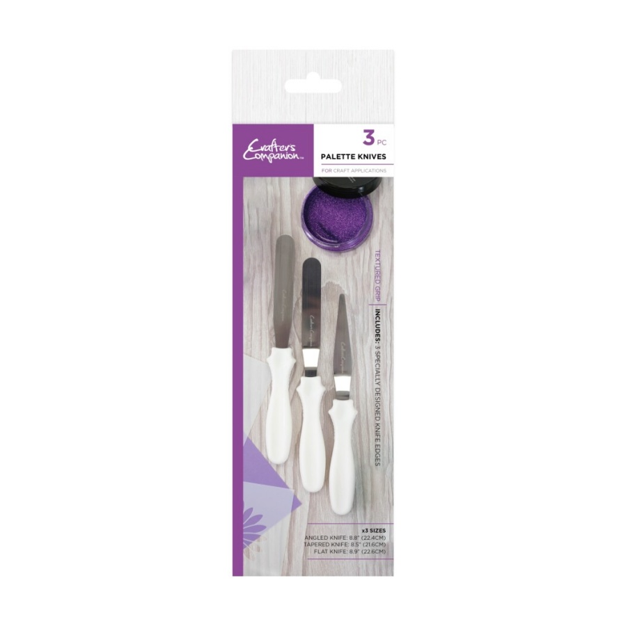 Set van drie Crafter’s Companion paletmessen. Perfect voor het aanbrengen van pasta’s, verf en andere media.