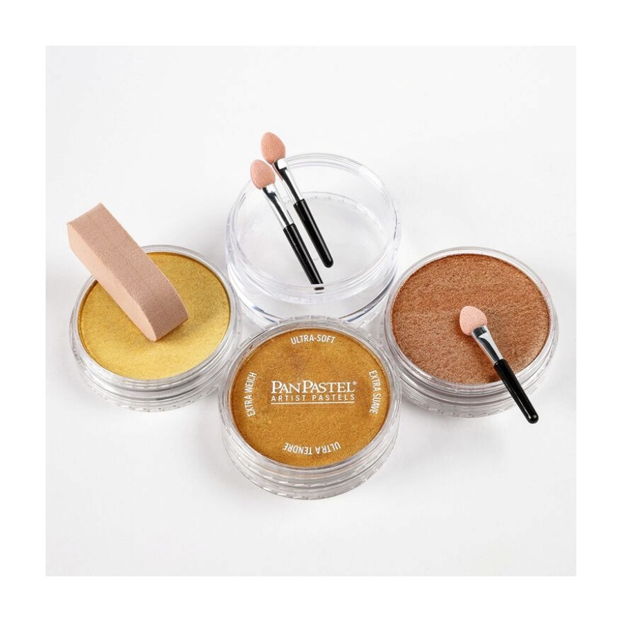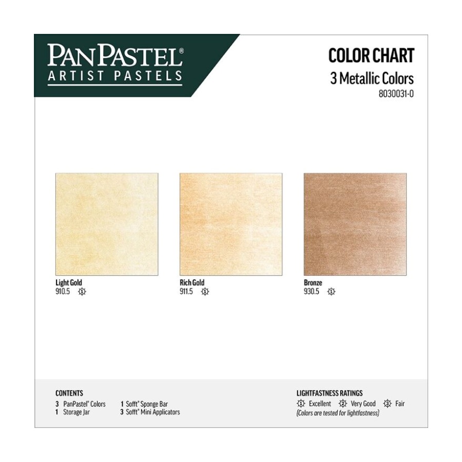 Een selectie metallic kleuren die afzonderlijk gebruikt kunnen worden of gemengd kunnen worden met andere PanPastel-kleuren voor persoonlijke metallic effecten. De set bevat 3 PanPastel-kleuren en een selectie Soft Tools.