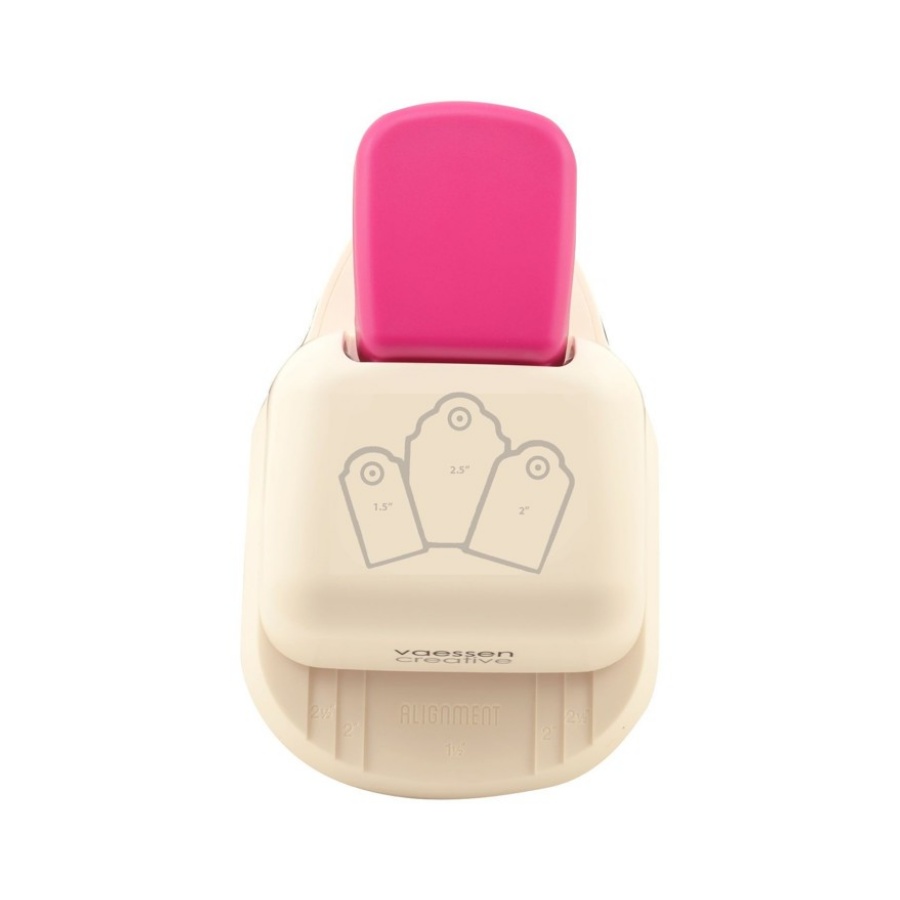 Met deze Vaessen Creative 3-in-1 label pons – in het Engels tag punch genoemd – maak je papieren etiketten en cadeaulabels met een geschulpte rand in 3 verschillende maten met één pons. Stans een klein label van 3,8 cm breed, middelgrote labels van 5,1 cm breed en grote labels van 6,35 cm breed. De lengte is naar wens te bepalen. Maak labels voor cadeaus, voorraadpotten, geschenkverpakkingen, wenskaarten, plakboekpagina’s, decoraties en andere papieren knutselwerken.