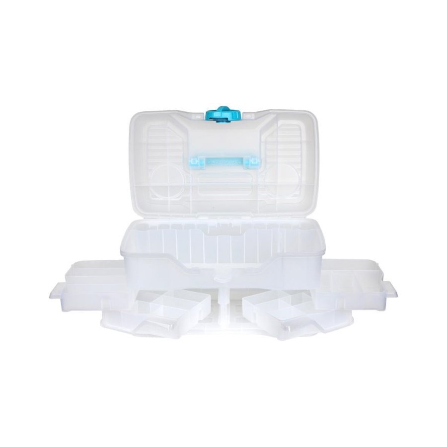 Art Bins nieuwe doorschijnende Project Boxes zijn niet alleen een aantrekkelijke toevoeging aan de ArtBin-lijn, maar beschikken ook over een innovatief vergrendelingsmechanisme en uitzwenkbare laden. De lades zijn zelfvergrendelend en zwenken gemakkelijk naar buiten, waardoor je volledige toegang hebt tot de inhoud en alles op zijn plaats blijft waar je het hebt achtergelaten. Ze zijn gemaakt van mat, doorschijnend plastic en voorzien van een grote, lichtblauwe draaiknop en een bijpassend lichtblauw ergonomisch handvat.