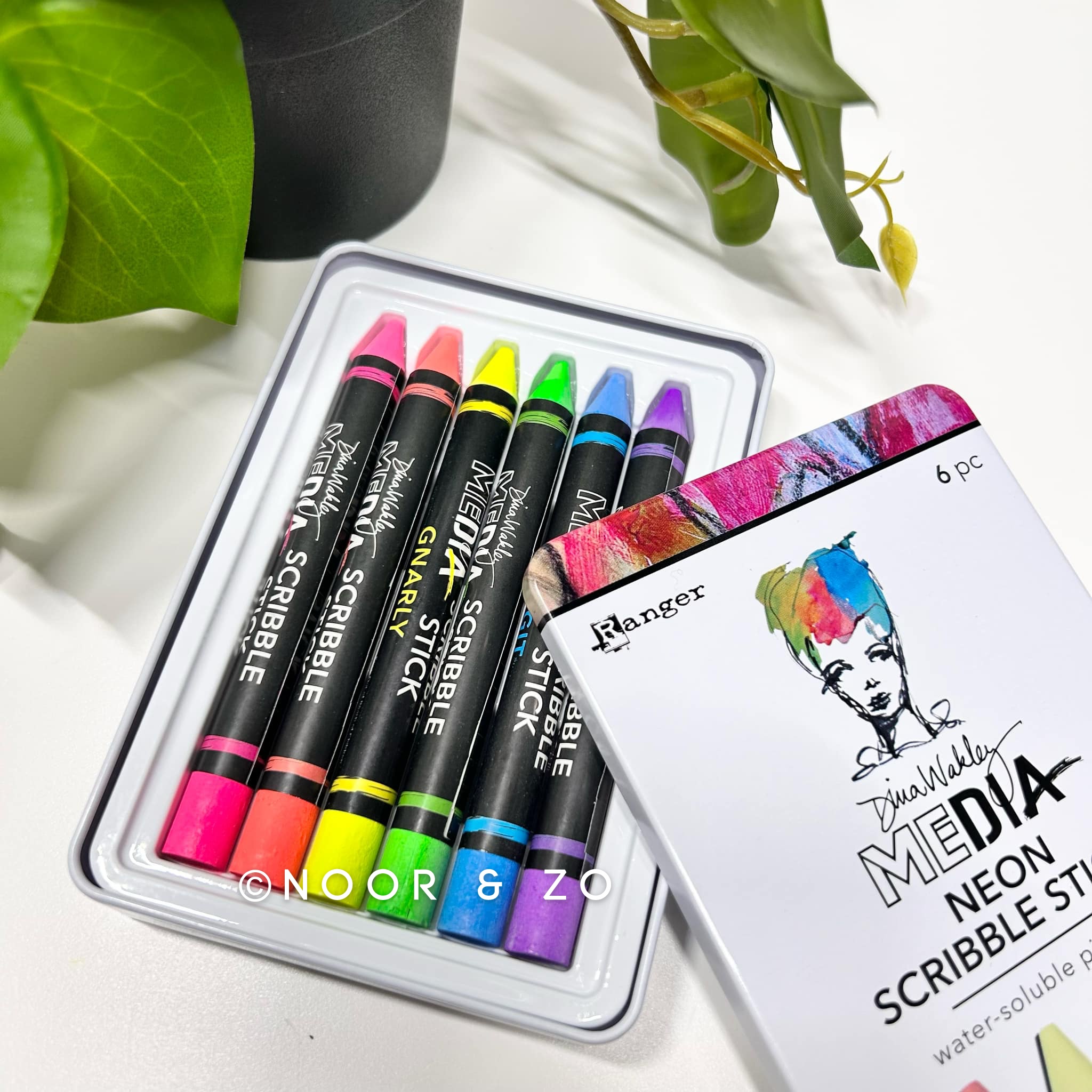 Deze veelzijdige, hoogwaardige pigmentstiften schetsen als kleurpotloden, maar zijn in water oplosbaar als aquarelpotloden. Gebruik Scribble Sticks om aquarelachtergronden te creëren of opvallende, ondoorzichtige ontwerpen, krabbels en markeringen op Dina Wakley Acrylic Paints en andere mediums. De set bevat 6 kleuren die passen bij het kleurenpalet van Dina Wakley Media. Kleuren inbegrepen: Stoked, Radicaal, Gnarly, Tubular, Legit, Bodacious.