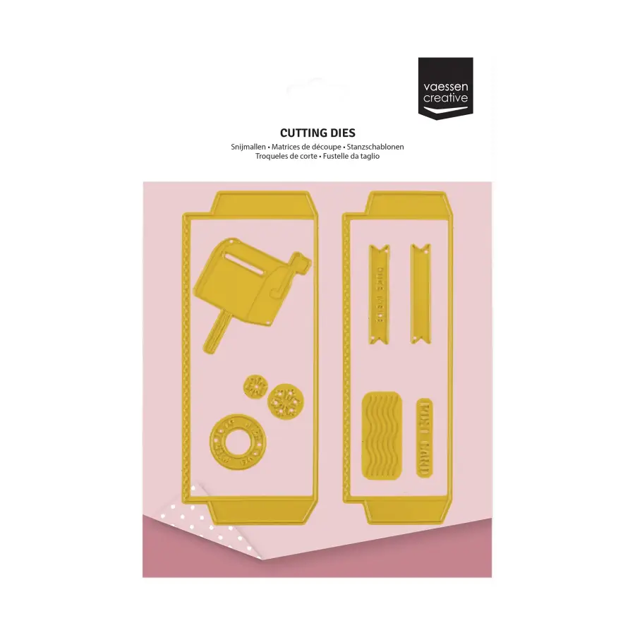 Met deze set snijmallen (ook wel stans of cutting die genoemd) van Vaessen Creative snijd je met een stansmachine perfecte postzakjes uit diverse materialen als papier, cardstock, metaalfolie, vilt, stof, dun leer en meer. Deze snijmallen zijn onderdeel van de Jolly Mail Collection, de Vaessen Creative kerstcollectie van 2025. Het leuke aan snijmallen is dat je beschikt over prachtige ontwerpen die je niet zelf hoeft te tekenen en uit te knippen of snijden. Gebruik de snijmallen voor knutselen met papier zoals kaarten maken, journaling, scrapbooking of mixed media. Deze snij- en embossingmallen zijn te combineren met snijmallen 3625-0101.