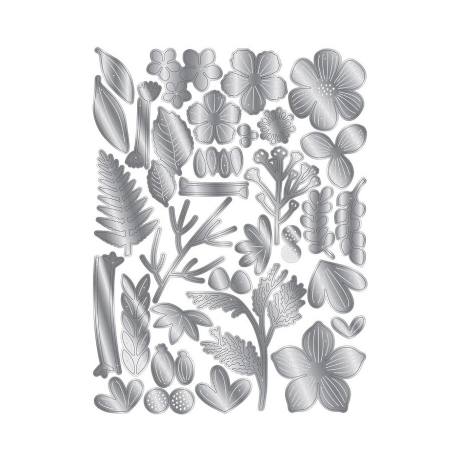 Deze verpakking bevat 32 snijmallen en 19 clearstempels waarmee u unieke papieren bloemmotieven kunt personaliseren.