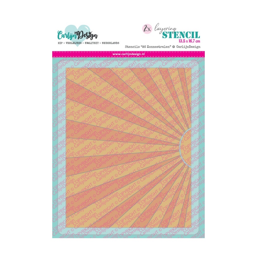 Set met 2 stencils met zonnestralen van een ondergaande zon. {ast perfect bij de bijpassende hot foil “A6 Zonnestralen”. Ook leuk te gebruiken voor onderwater of een disco effect!