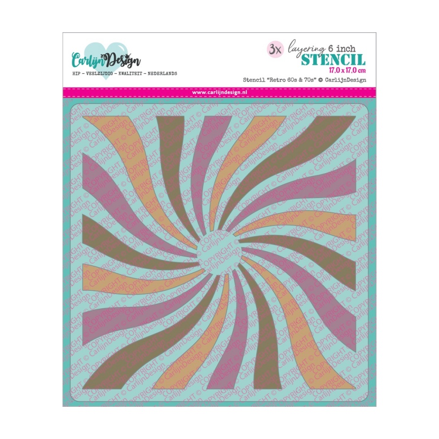 Een set van 3 layering stencils, waarmee je een prachtige retro achtergrond kunt maken in 3 (of meer) kleuren.