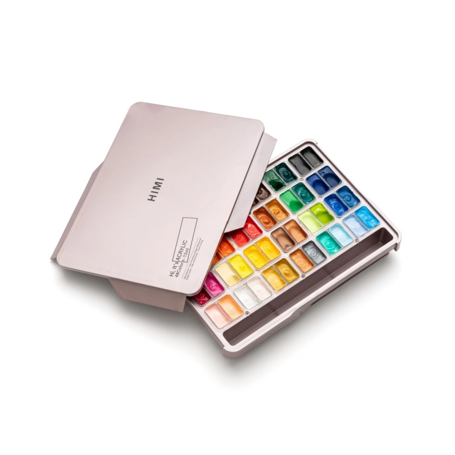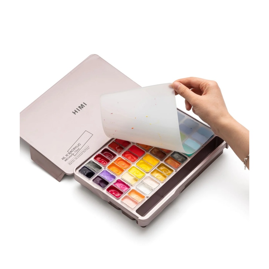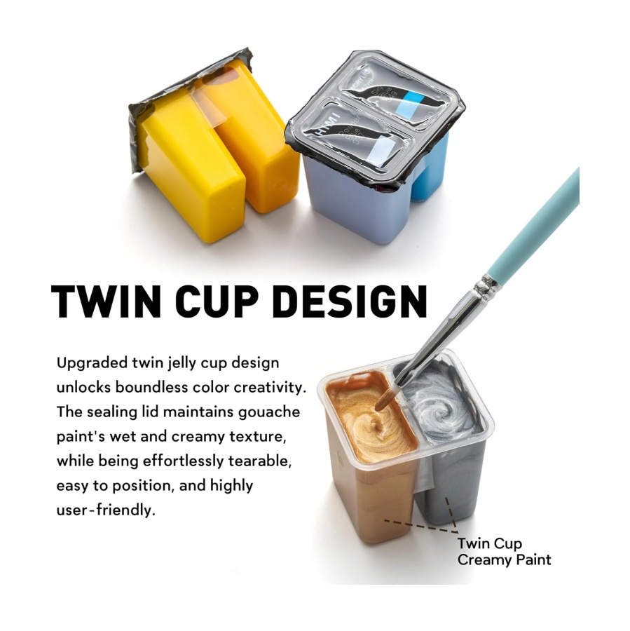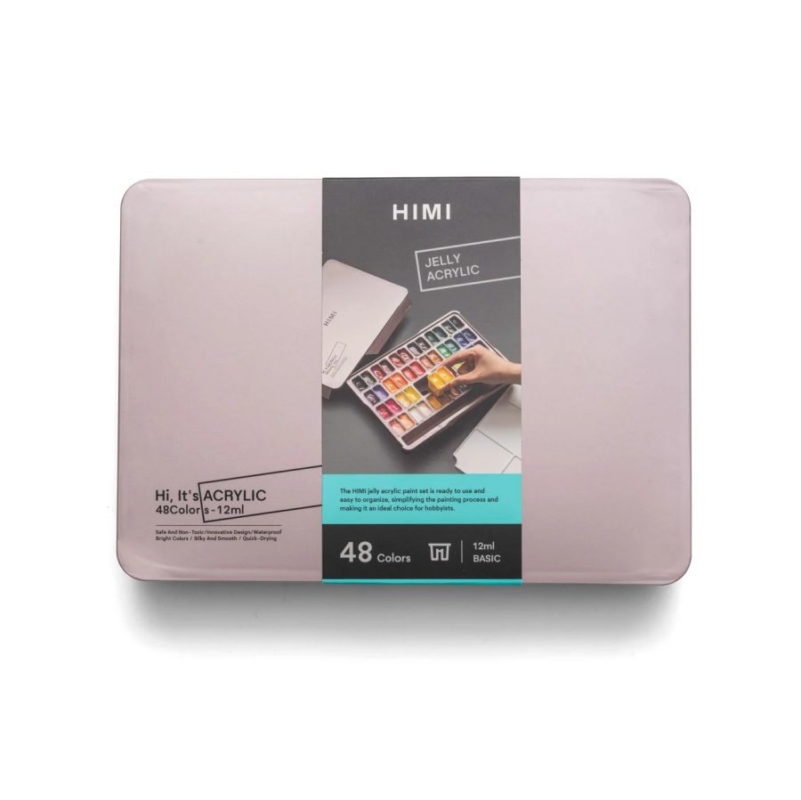 48 kleuren HIMI Twin Cup Jelly Acrylverf. Deze verf produceert levendige, rijk gepigmenteerde en langdurige, levendige kleuren die snel drogen.
