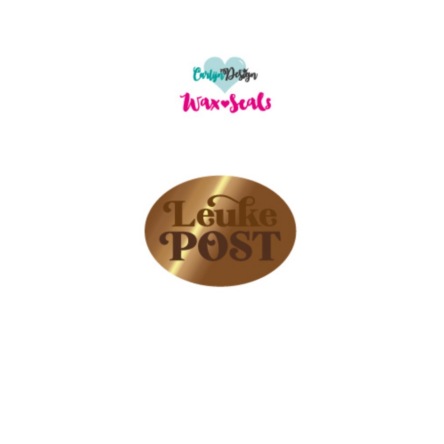 Zelfontworpen ovalen waxzegel met Leuke Post in sierlijk lettertype, om je post nog leuker te maken!