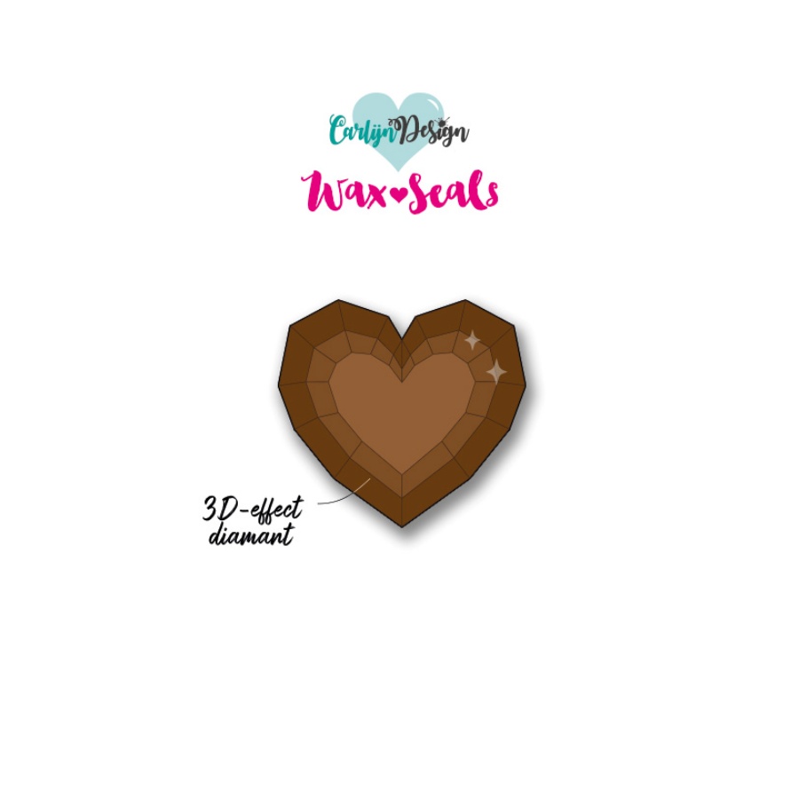 Zelfontworpen moderne waxzegel 3D Ruby Heart, met een hartje in de vorm van een edelsteen. Ontzettend tof 3D-effect, ongeveer 28 mm breed.