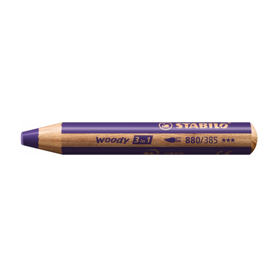 Het unieke multifunctionele potlood: kleurpotlood, aquarel en waskrijt in één! De STABILO woody 3 in 1 kan niet alleen op papier of karton worden gebruikt, maar ook op ramen, broodtrommels, spiegels of schoolborden. De kleur kan heel gemakkelijk met water van glazen oppervlakken worden afgeveegd. De dikke stift biedt extra lang kleurplezier en bevat acht keer zoveel kleur als een normaal kleurpotlood! Door de vorm en diameter van de STABILO woody 3 in 1 ligt hij perfect in kinderhanden en is hij bestand tegen de wildste kleuravonturen met zijn onbreekbare kern. Ook kunstenaars met hoge eisen zullen dankzij de vele gebruiksmogelijkheden veel plezier beleven aan dit multifunctionele potlood.